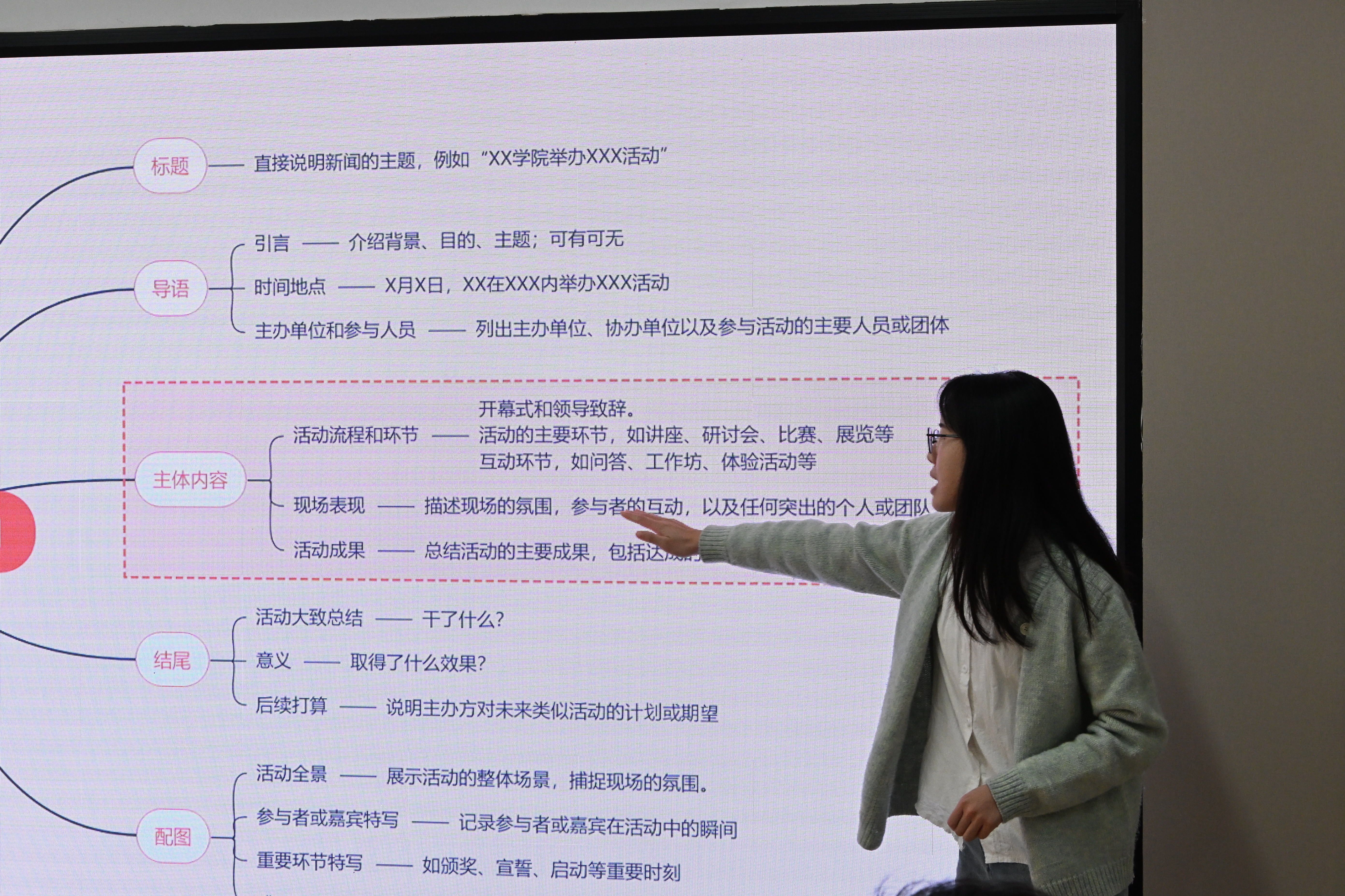李路怡结合自身的学习经历与实践经验,针对网信部新闻写作中的常见问题和实际工作需求,精心设计了此次培训内容。